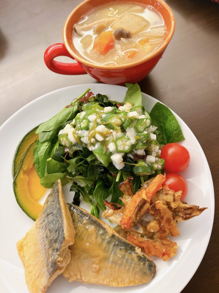 ご飯・メインにタンパク質・サラダ・副菜・味噌汁